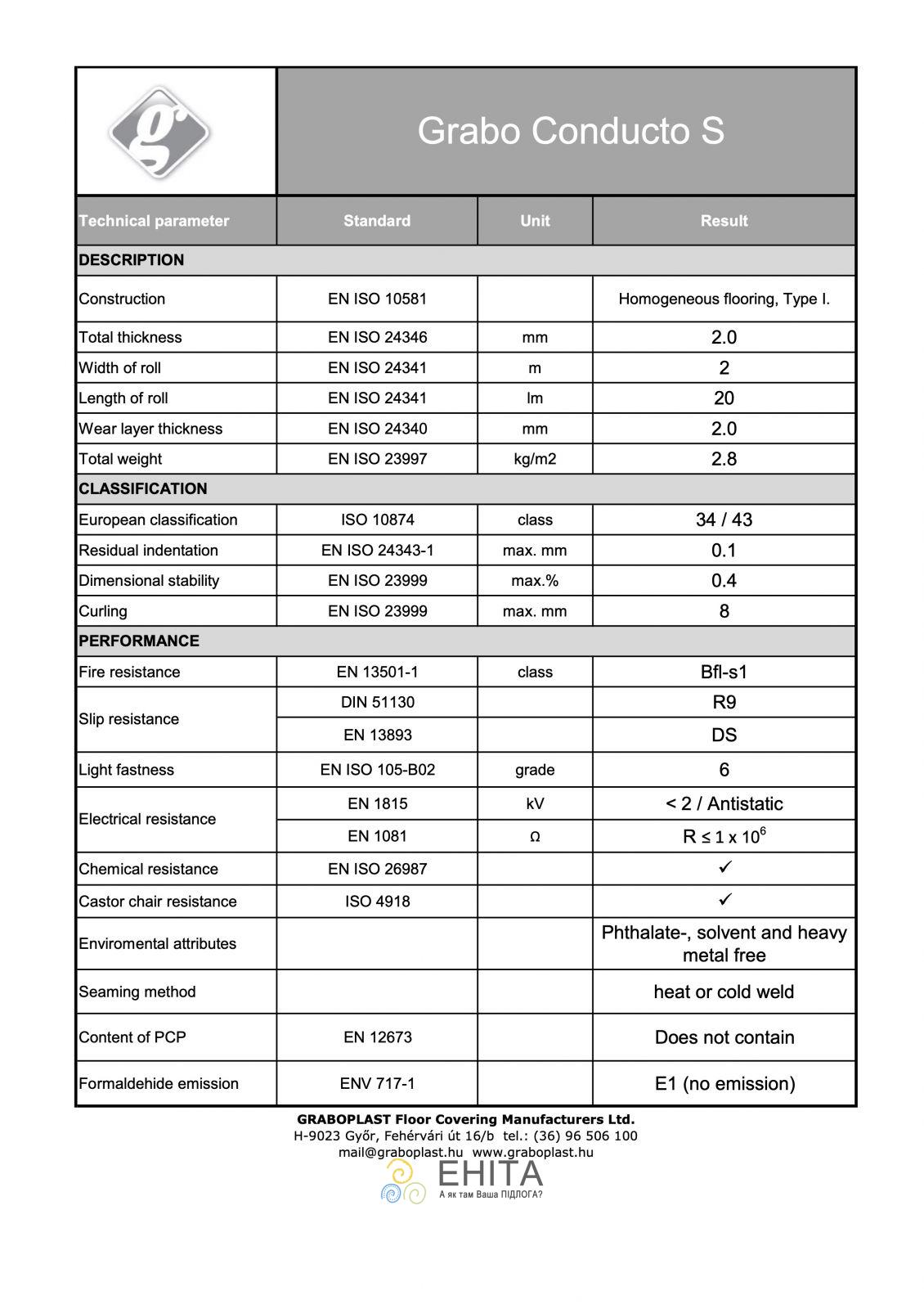Graboplast Conducto S — это специализированное напольное покрытие, разработанное для обеспечения электробезопасности в помещениях с высокими требованиями к защите от статического электричества. Благодаря своим токопроводящим свойствам этот линолеум идеально подходит для использования в лабораториях, операционных, производственных цехах с электронным оборудованием, серверных комнатах и других объектах, где необходимо контролировать уровень электростатического заряда.